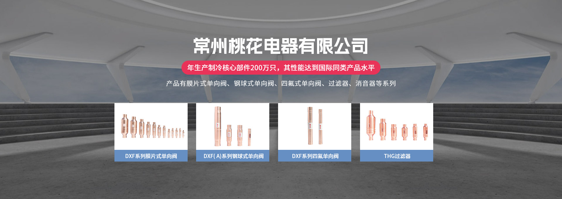 常州桃花電器有限公司地處中國長江“金三角”之稱的上海至南京高速公路、城際高鐵、常州高新經(jīng)濟(jì)技術(shù)開發(fā)區(qū)路段,交通便利、技術(shù)力量十分雄厚。它是集研究、開發(fā)設(shè)計、制造和經(jīng)營制冷核心部件的企業(yè),主要生產(chǎn)中央空調(diào)上使用的制冷部件。產(chǎn)品有膜片式單向閥、鋼球式單向閥、四氟式單向閥、過濾器、消音器等系列。年生產(chǎn)制冷核心部件200萬只,其性能達(dá)到國際同類產(chǎn)品水平。 企業(yè)擁有先進(jìn)的科學(xué)技術(shù)、國際先進(jìn)的生產(chǎn)加工設(shè)備和精密的檢測儀器,并已通過ISO9001質(zhì)量體系及CE認(rèn)證,公司歷史悠久,2000年起,經(jīng)過長期積累、沉淀,經(jīng)驗豐富,從而保證了產(chǎn)品的高質(zhì)量、高性能、高耐用性。企業(yè)產(chǎn)品在國內(nèi)外市場具有較高的知名度,深受眾多中外品牌制冷客商的好評。主要客戶有約克、麥克維爾、美的、開利、特靈、頓漢布什、清華同方、天加等.并出口北美、歐洲、東南亞等地區(qū)。 高品質(zhì)產(chǎn)品是企業(yè)的保證,周到服務(wù)是合作友誼的承諾,企業(yè)本著“求